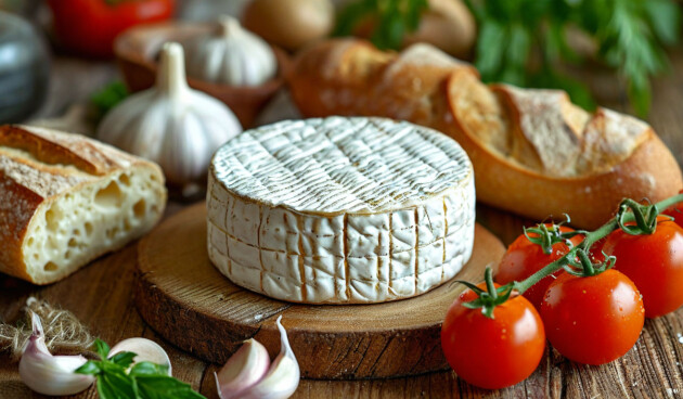 Сыр камамбер с багетом, помидорами черри и чесноком